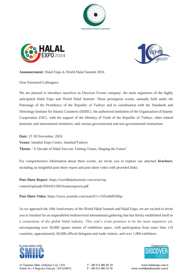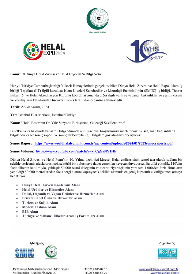 10. Dünya Helal Zirvesi Ve Helal Expo 2024 Organizasyon