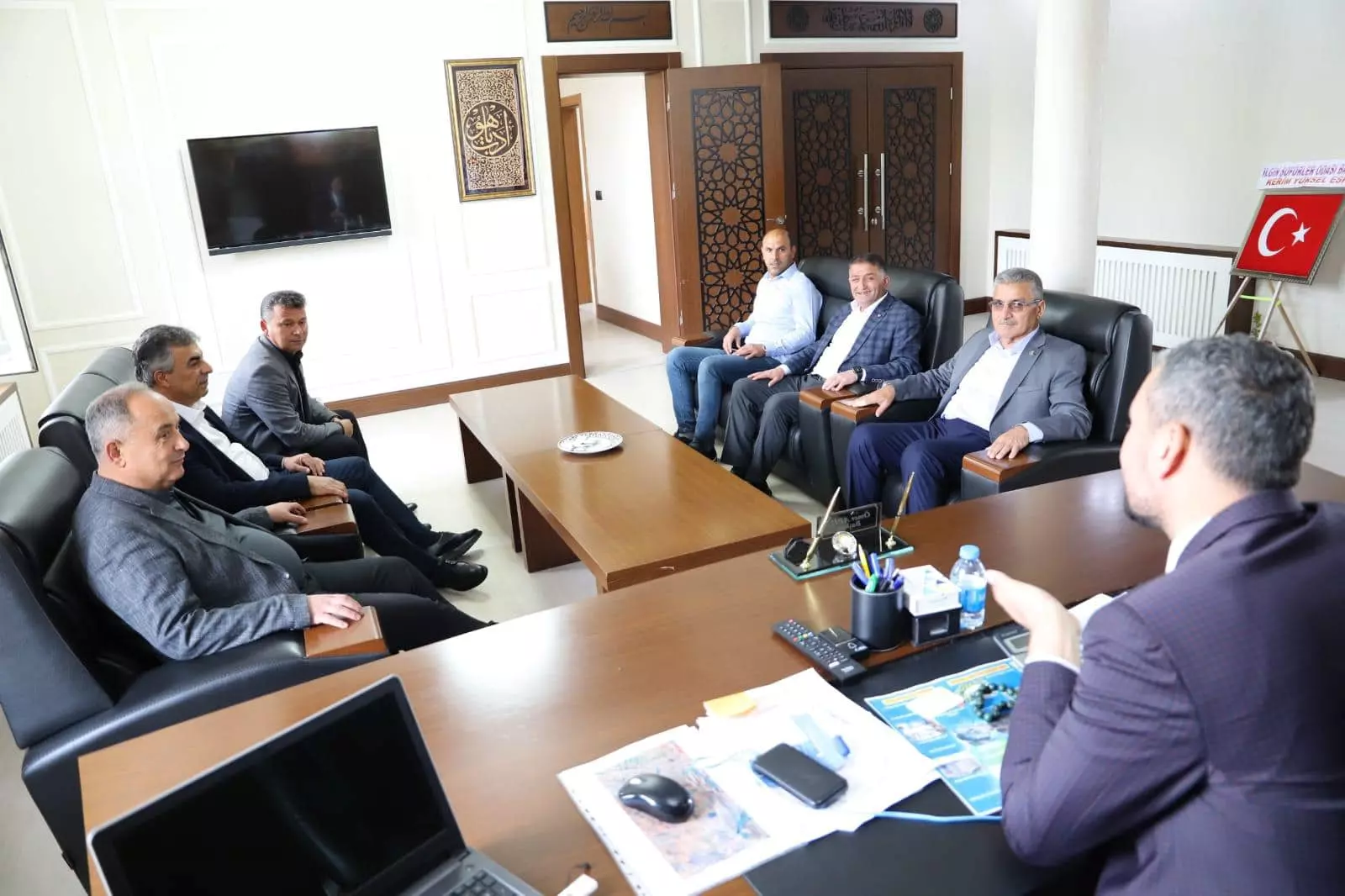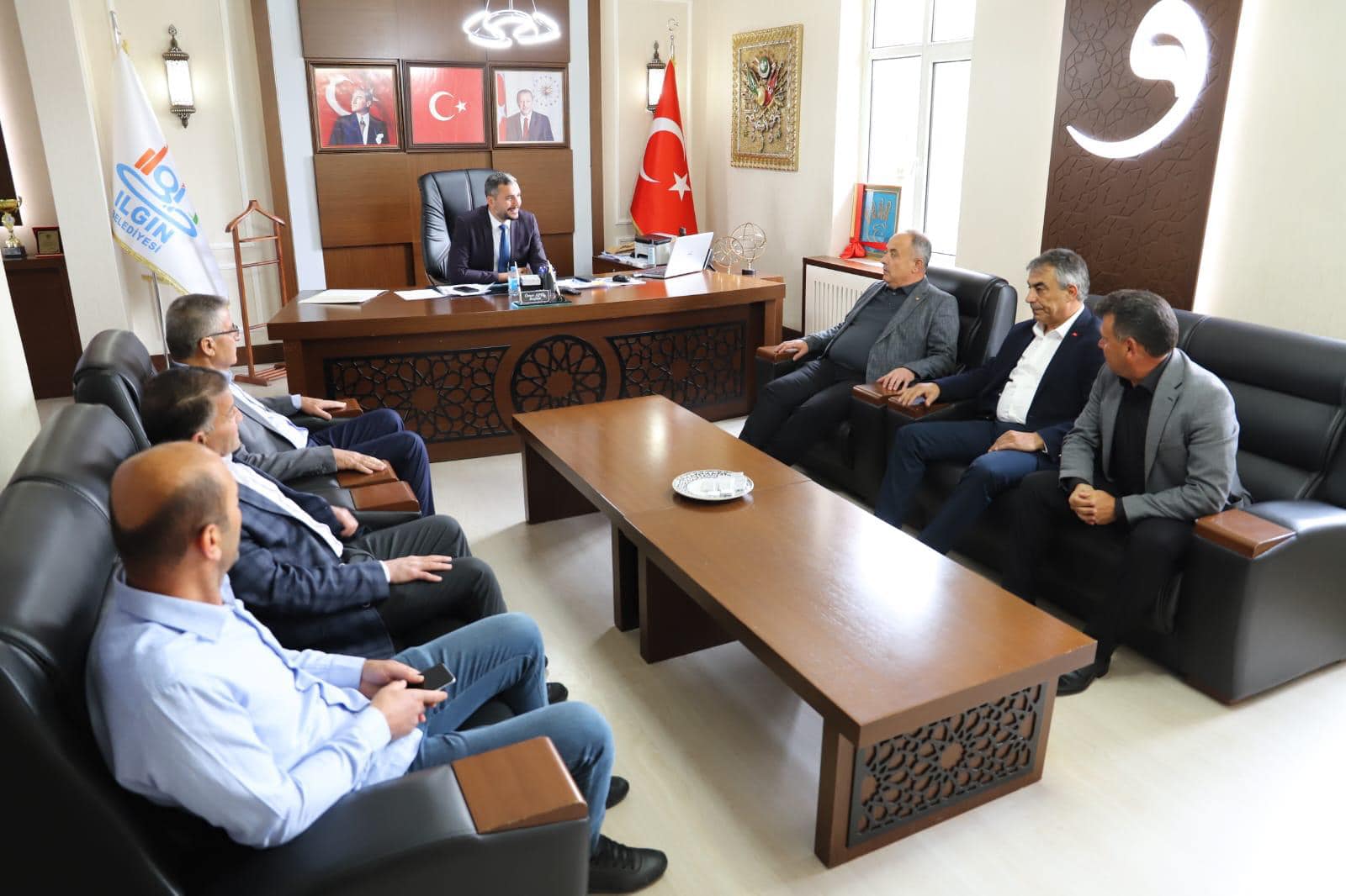 Ilgın Ticaret Borsası Yönetim Kurulu Başkanımız Sayın Hacı Ahmet KOÇ, Ilgın Ticaret ve Sanayi Odası Yönetim Kurulu Başkanı Sayın Vehbi ÖZLEN, Ilgın Esnaf ve Sanatkarlar Odası Başkanı Sayın Ertuğrul PARLAK, Ilgın Ziraat Odası Başkanı Sayın Ahmet KARA, Ilgın Esnaf ve Sanatkarlar Kredi ve Kefalet Kooperatifi Başkanı Sayın Mevlüt YALI, Ilgın Motorlu Taşıyıcılar Kooperatifi Başkanı Sayın Fatih YANARDAĞ ve Konya Bölgesi Hayvancılık Kooperatifleri Birliği Başkanı Sayın Yakup ÇİÇEK ile birlikte Ilgın Belediye Başkanı Sayın Ömer APİL ’i makamında ziyaret ederek hayırlı olsun dileklerinde bulundular.