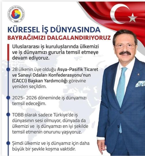 28 Ülkenin Üye Olduğu Asya-Pasifik Ticaret ve Sanayi Odalaeı Konfederasyonu'nun (CACCI) Başkan Yardımcığı görevine yeniden seçildi.